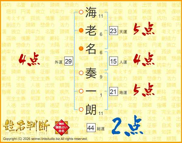 海老名奏一朗さんの総運は44画の2点!