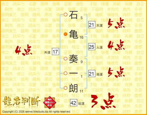 石亀奏一朗さんの天運は21画の5点!