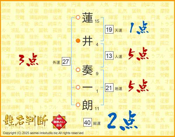 蓮井奏一朗さんの総運は40画の2点!