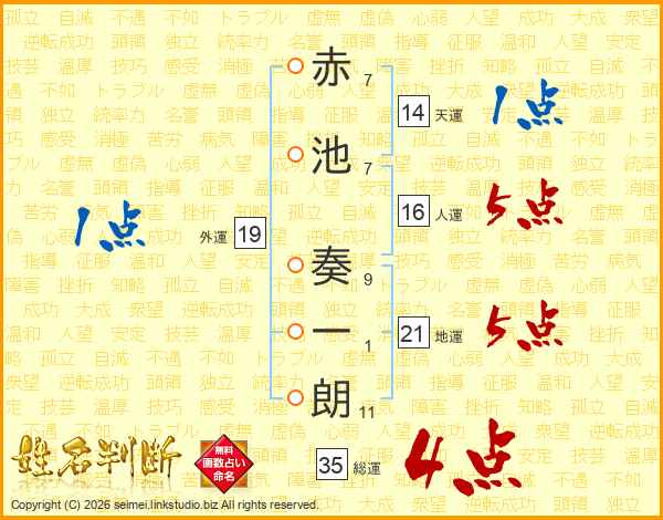 赤池奏一朗さんの天運は14画の1点!