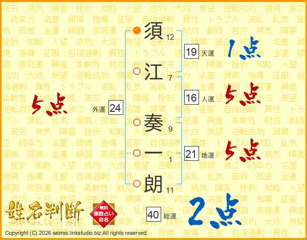 須江奏一朗さんの地運は21画の5点!