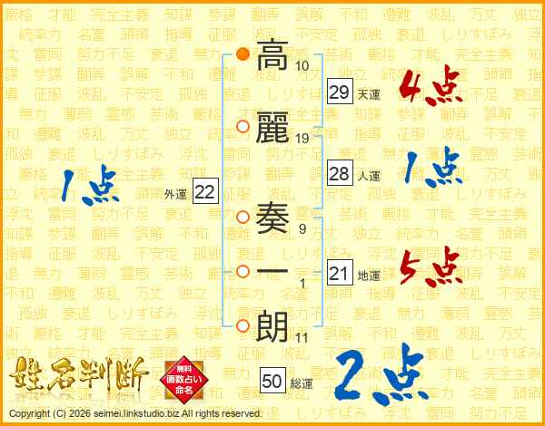 高麗奏一朗さんの総運は50画の2点!