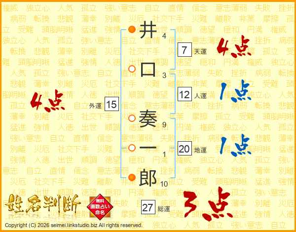 井(4画)口(3画) 奏(9画)一(1画)郎(10画)