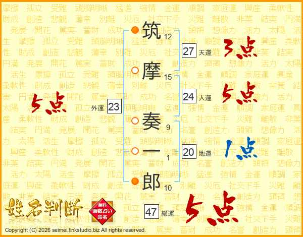 筑摩奏一郎さんの総運は47画の5点!