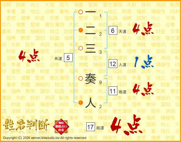 一二三奏人さんの総運は17画の4点!
