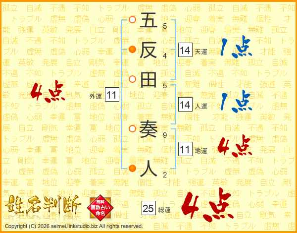 五反田奏人さんの総運は25画の4点!