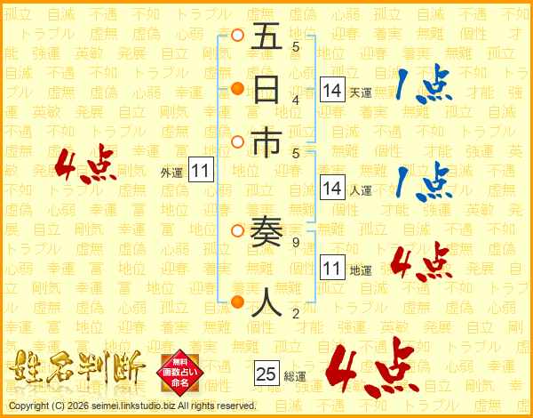 五日市奏人さんの総運は25画の4点!