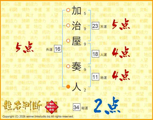 加治屋奏人さんの総運は34画の2点!