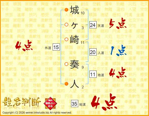 城ヶ崎奏人さんの総運は35画の4点!