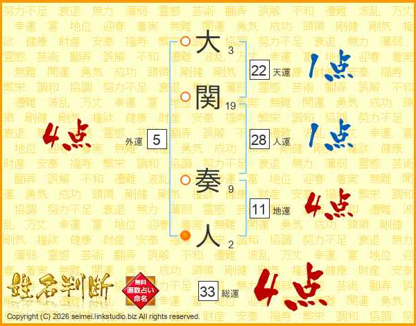 大関奏人さんの総運は33画の4点!