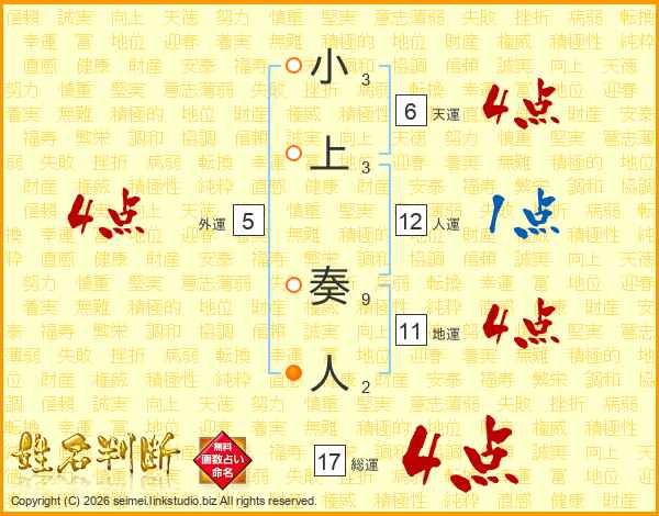 小上奏人さんの総運は17画の4点!