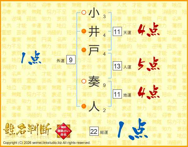 小井戸奏人さんの天運は11画の4点!