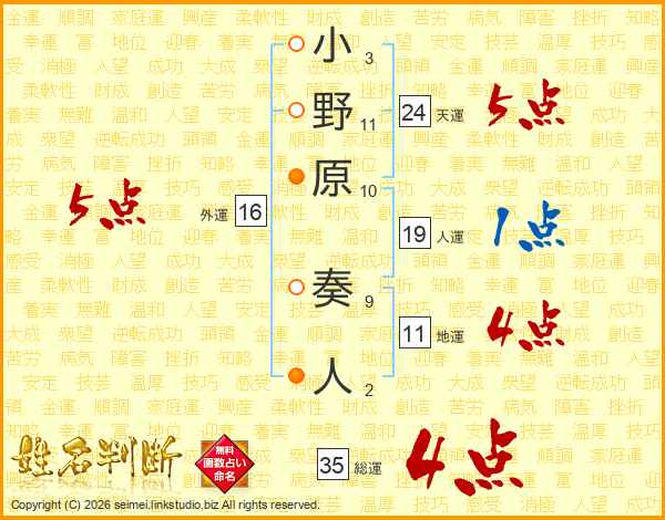 小野原奏人さんの総運は35画の4点!