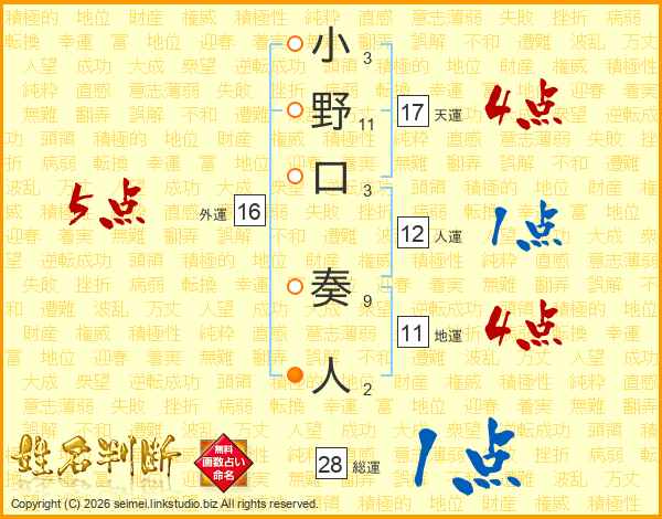 小野口奏人さんの総運は28画の1点!