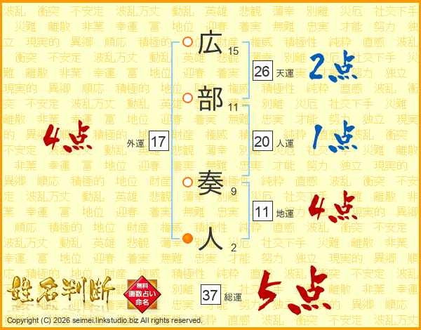 広部奏人さんの総運は37画の5点!