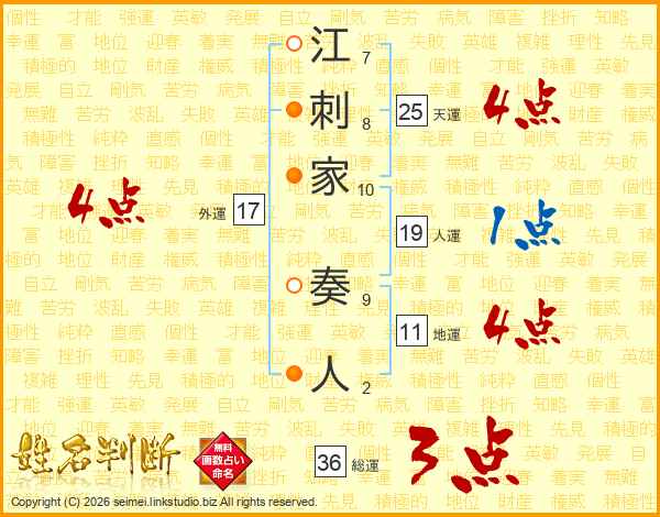江刺家奏人さんの総運は36画の3点!