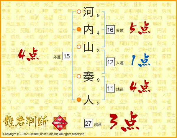 河内山奏人さんの総運は27画の3点!
