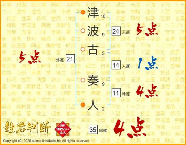 津波古奏人さんの総運は35画の4点!