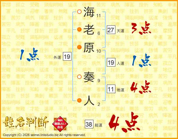 海老原奏人さんの人運は19画の1点!
