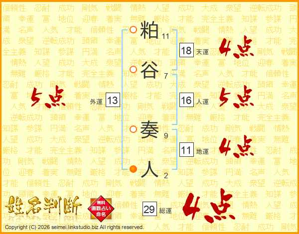 粕(11画)谷(7画) 奏(9画)人(2画)