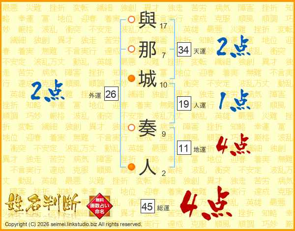 與那城奏人さんの総運は45画の4点!