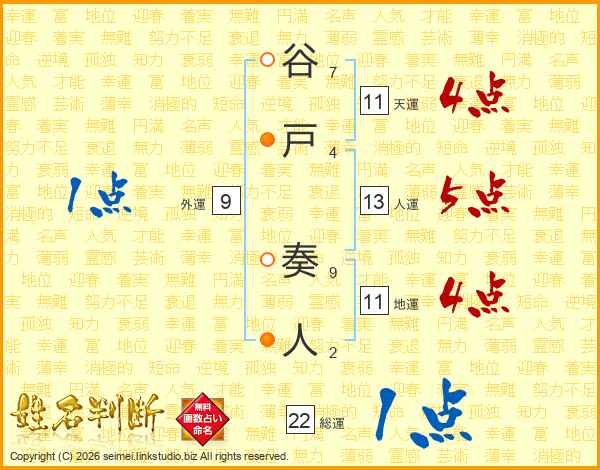 谷戸奏人さんの総運は22画の1点!