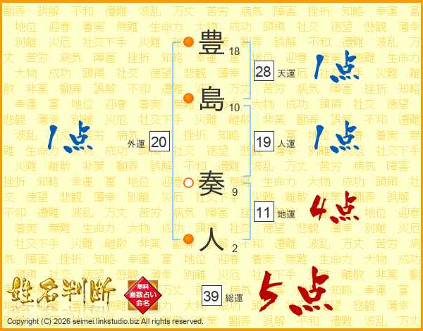 豊島奏人さんの総運は39画の5点!