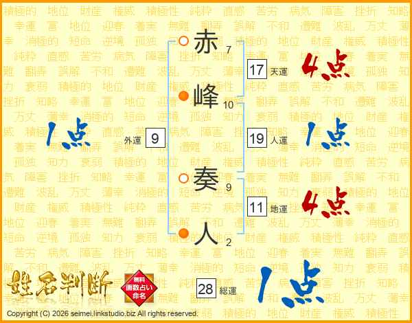 赤峰奏人さんの天運は17画の4点!