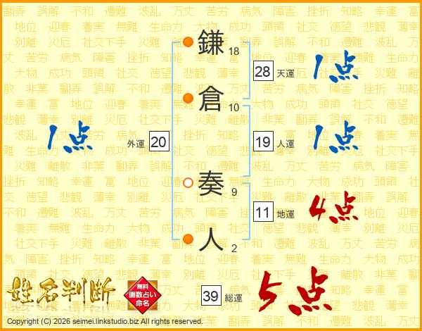 鎌倉奏人さんの総運は39画の5点!