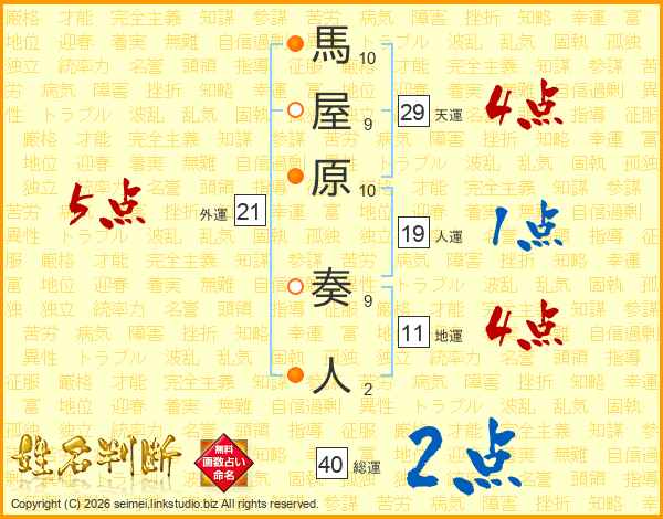 馬屋原奏人さんの天運は29画の4点!