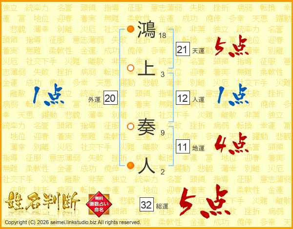 鴻上奏人さんの総運は32画の5点!