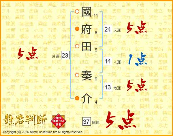 國府田奏介さんの総運は37画の5点!