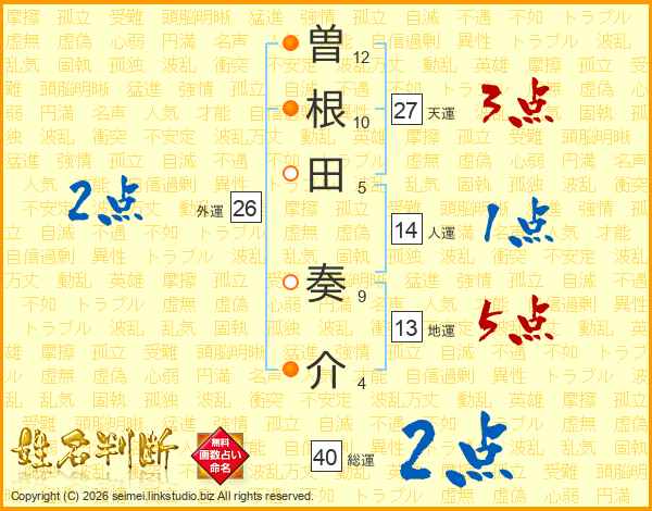 曽根田奏介さんの人運は14画の1点!