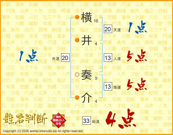 横井奏介さんの総運は33画の4点!
