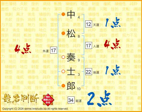 中松奏士郎さんの総運は34画の2点!