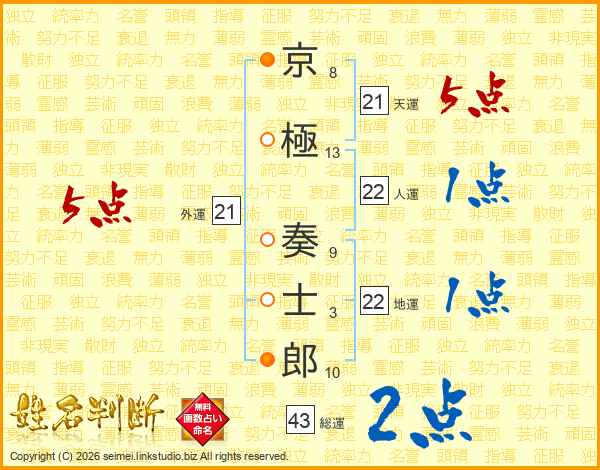 京極奏士郎さんの天運は21画の5点!