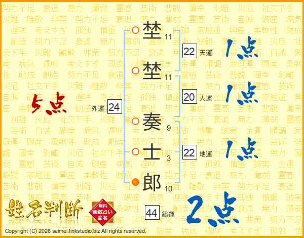 埜(11画)埜(11画) 奏(9画)士(3画)郎(10画)