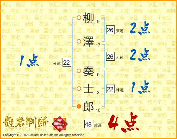 柳澤奏士郎さんの総運は48画の4点!