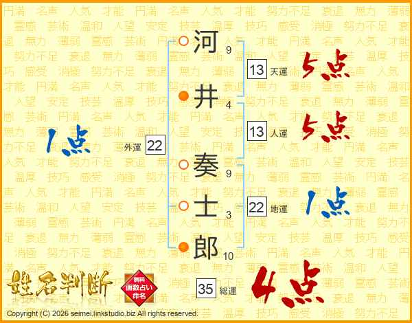 河井奏士郎さんの総運は35画の4点!