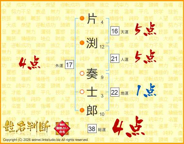 片渕奏士郎さんの総運は38画の4点!