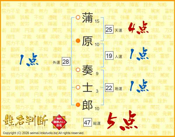 蒲原奏士郎さんの天運は25画の4点!