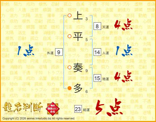 上平奏多さんの総運は23画の5点!