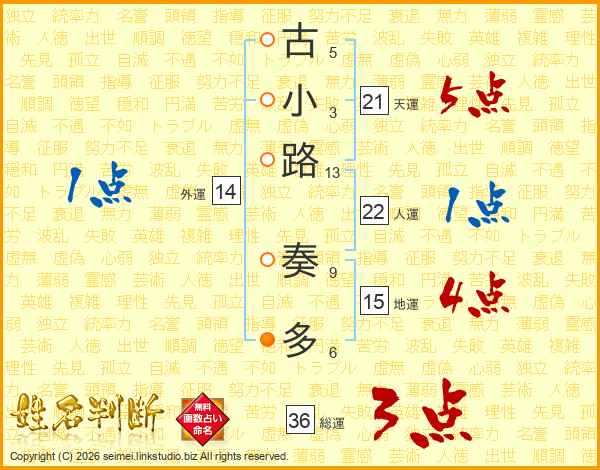 古小路奏多さんの天運は21画の5点!