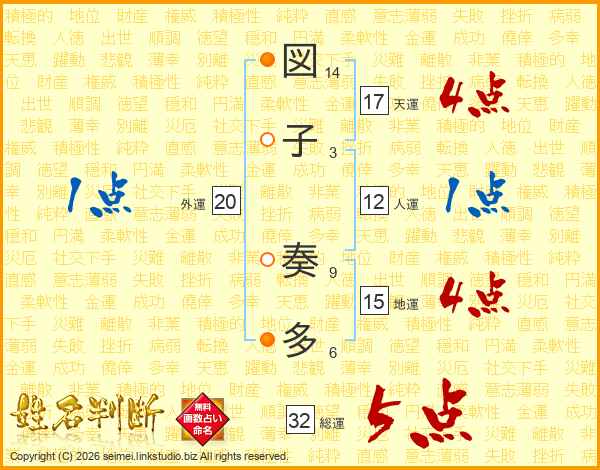 図子奏多さんの総運は32画の5点!