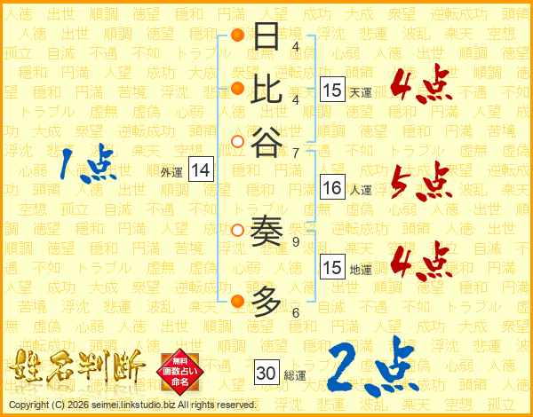 日(4画)比(4画)谷(7画) 奏(9画)多(6画)