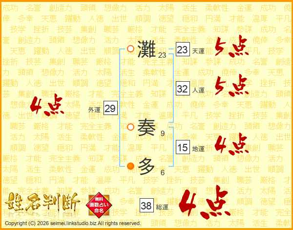 灘奏多さんの総運は38画の4点!