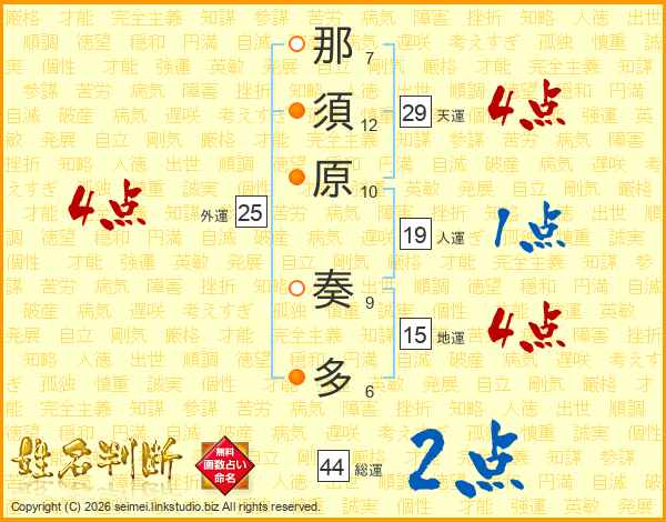 那(7画)須(12画)原(10画) 奏(9画)多(6画)