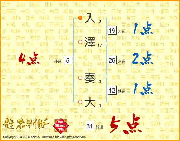 入澤奏大さんの総運は31画の5点!