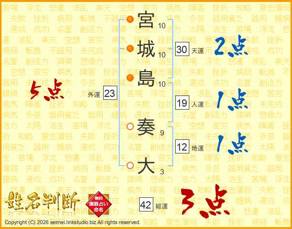 宮城島奏大さんの天運は30画の2点!