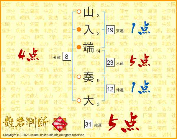山入端奏大さんの人運は23画の5点!